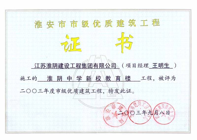 2003年市级优质工程淮中新校区食堂工程(耿玉海)