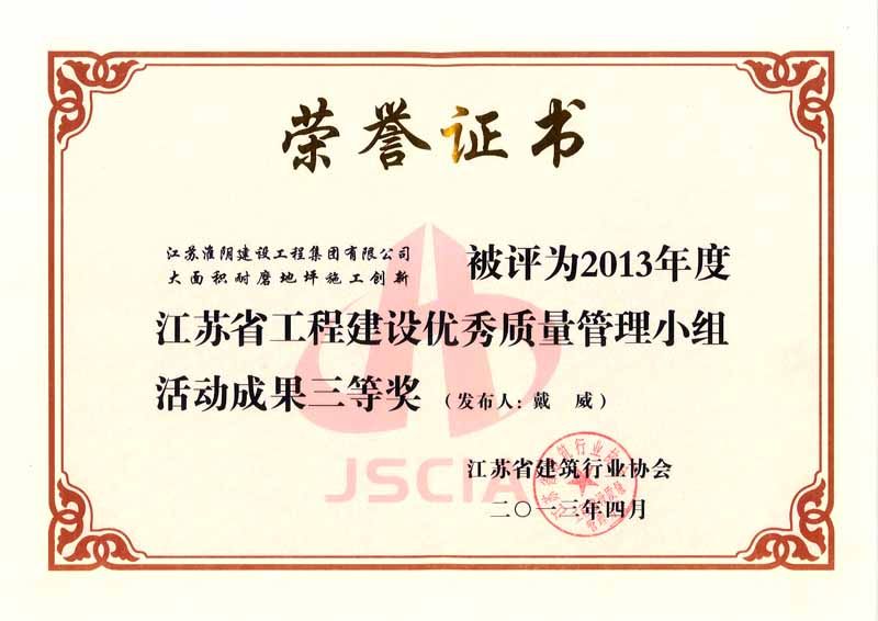 2013年度江苏省工程建设优秀质量管理小组活动成果三等奖