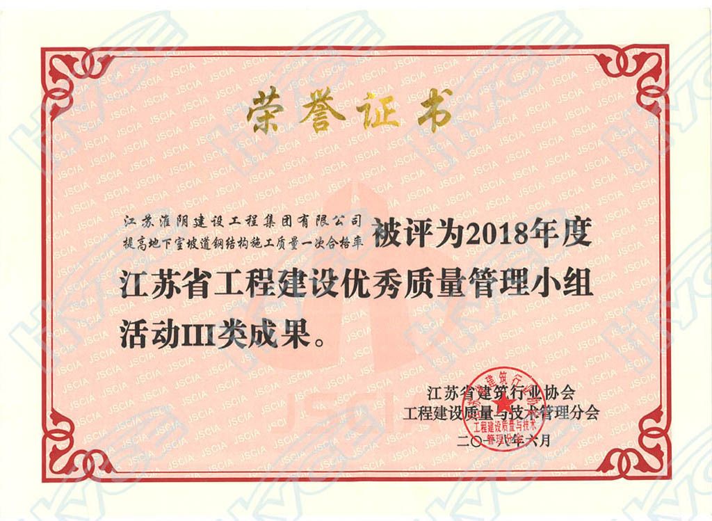 江苏省工程建设优秀质量管理小组活动III类成果