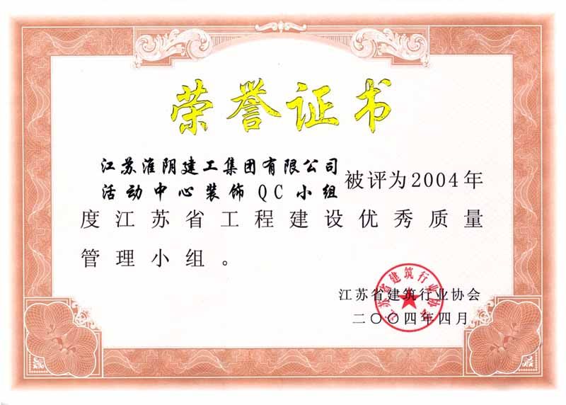 2004年市级QC老干部活动中心装饰QC小组(优秀质量管理小组)