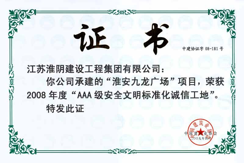 2009年AAA级安全文明标准化诚信工地