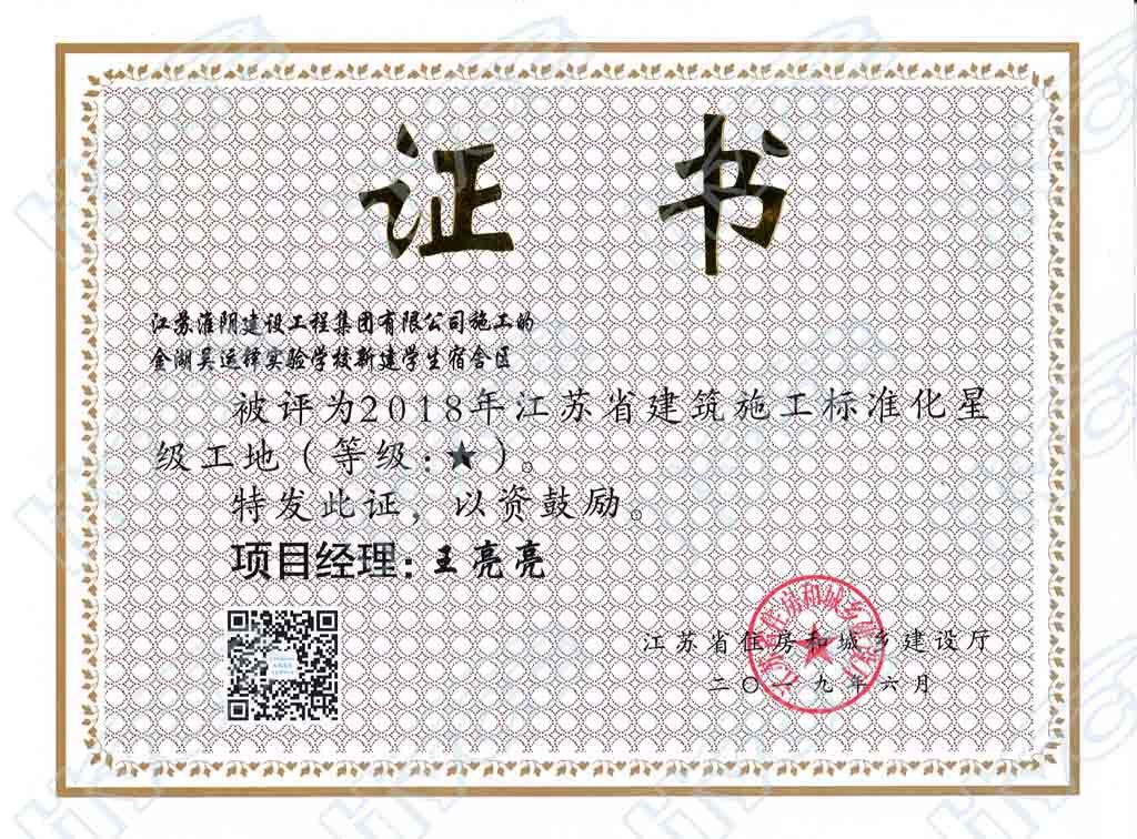 2018年度江苏省建筑施工标准化★星级工地-吴运铎实验学校