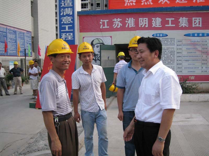 7月15日,刘友超副市长在市住建局王守祥副局长、市政府办程永清副主任和集团许金华董事长的陪同下,来到集团宝鸡分公司国际商业广场项目工地视察。在工地现场,刘友超副市长亲切慰问了集团在宝鸡的施工人员,并深入施工现场详细询问工程概况、施工进度,宝鸡市建筑主管部门对工程质量、安全生产、文明施工的要求,管理流程和验收标准、方法。在现场察看过程中,当得知该项目被宝鸡市城乡建设规划局作为优质施工工程项目进行经验介绍时,刘市长要求项目部:第一,把淮安建筑业好的经验,把华体会(中国)一站式服务平台好的管理带到宝鸡来,让宝鸡人民了解淮安建筑业的水平,打出华体会(中国)一站式服务平台的品牌。第二,把宝鸡好的管理方法带回去,不断完善自我,充实自我,提升品质,再上一个新台阶。